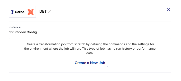 Calibo Accelerate supports data transformation using dbt Cloud. You can add dbt as a standalone node in the data transformation stage or you can connect it to a data lake and create a pipeline. In the standalone mode of dbt, you can import dbt projects into the platform and run existing jobs or create and run new jobs. If you connect dbt to a data lake and create a pipeline you can create a new job and run it.